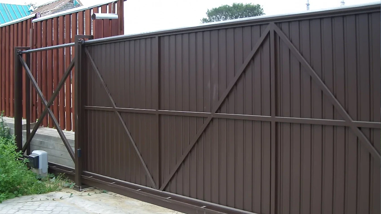Откатные ворота из профнастила с автоматикой